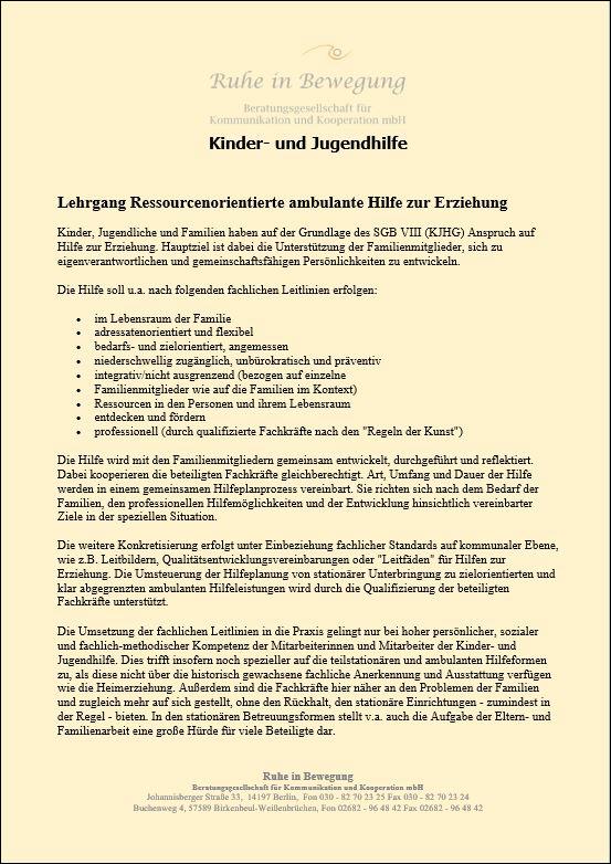 Lehrgang Ressourcenorientierte ambulante Hilfe zur Erziehung |